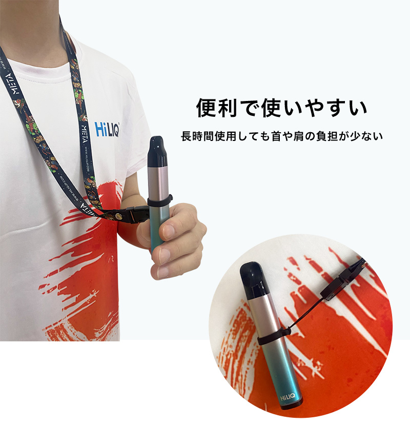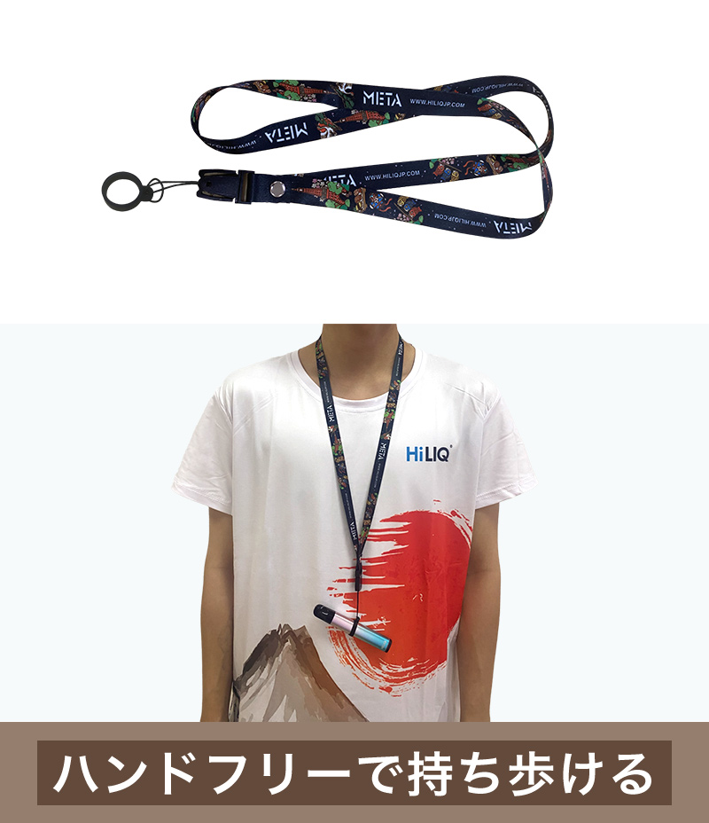 リキッド充填も操作も全て不要、味最高のデバイスとして現在大人気の「Meta」用のネックストラップです。お持ちのMetaを首からぶら下げられます。先端のラバーバンド部分をお使いのMetaに通してご使用ください。