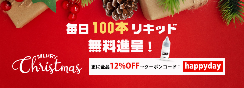 - 2.毎日100本リキッド無料進呈いたします。サイトでのバナーから若しくは下記のリンクから入り、無料リキッドをカートに入れてください。※ 数量限定ですので、在庫切れの場合ではゲットできません。